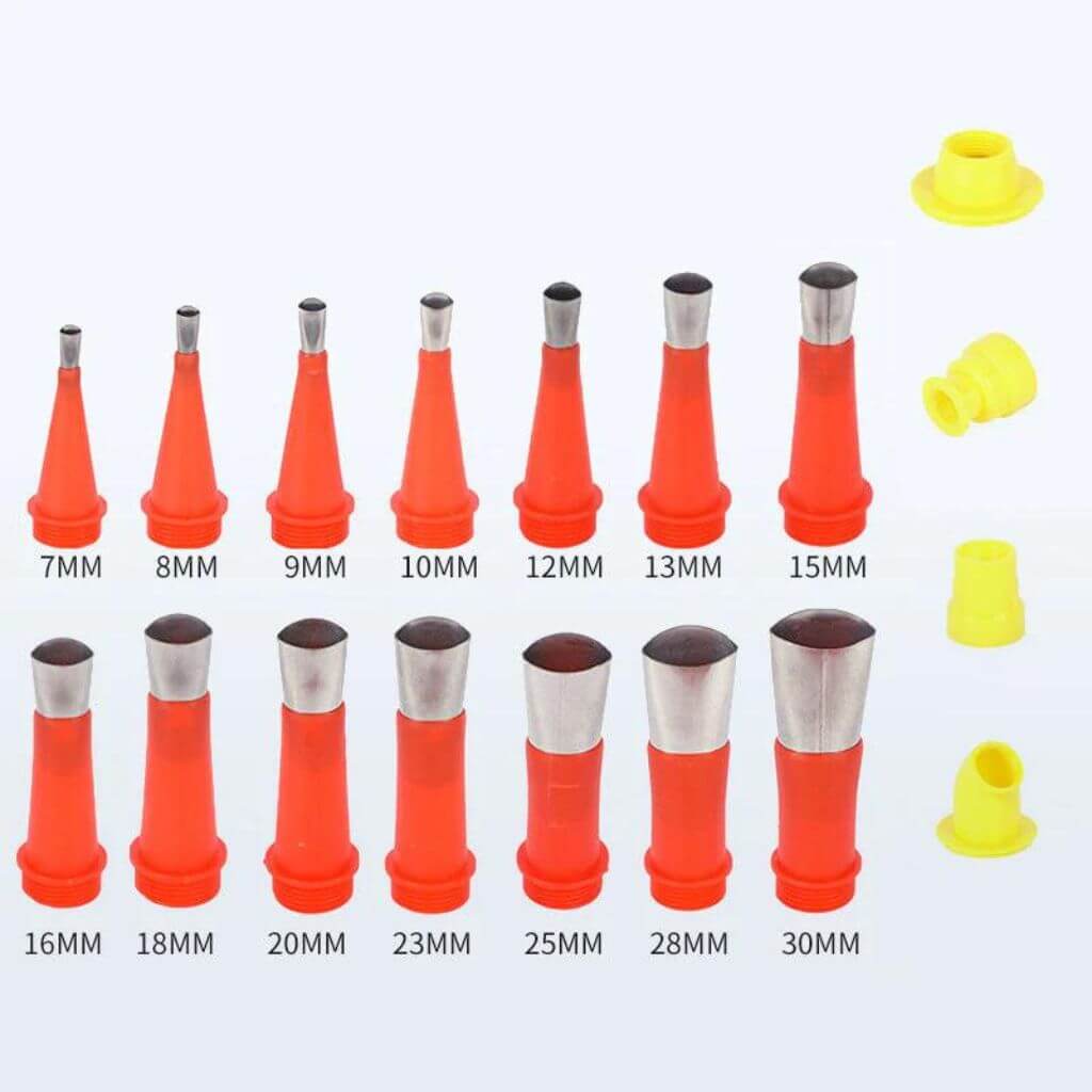 Entdecken Sie eine einfachere Art, Fugen abzudichten – mit einem Werkzeug, das für Genauigkeit und langanhaltende Leistung entwickelt wurde. Gefertigt aus rostfreiem Edelstahl bietet es 16 Düsenarten und 6 Anschlussbasen, die perfekt auf Spülen, Türen, Fenster, Badezimmer und Küchen abgestimmt sind. Für einfache Handhabung und Reinigung konzipiert, funktioniert es nahtlos mit allen handelsüblichen Fugenpistolen und hilft Ihnen, sauber definierte Kanten und ein makelloses Finish zu erzielen.