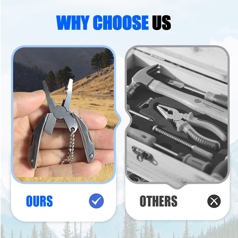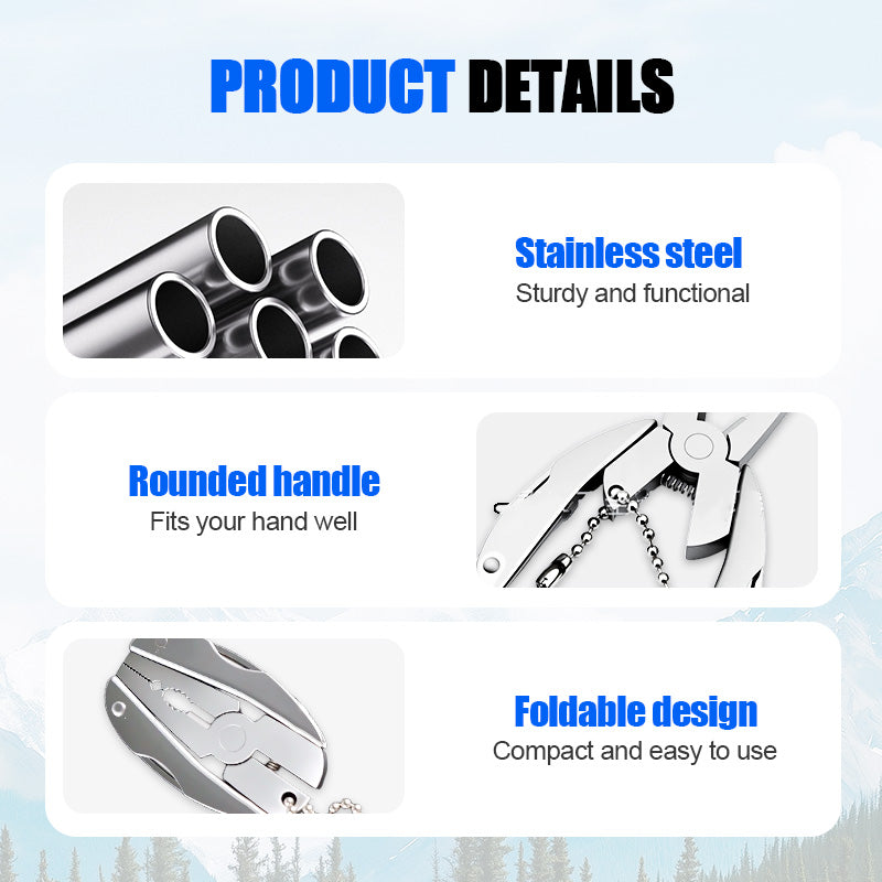 Kompakte Power, direkt in Ihrer Tasche. Dieses Mini-Multifunktionsklappzange ist Ihr perfekter Begleiter für tägliche Reparaturen und Outdoor-Abenteuer gleichermaßen. Hergestellt aus robustem, rostfreiem Edelstahl, bewältigt es mühelos alles vom Anziehen von Schrauben bis zum Schneiden und Öffnen. Sein verstellbares Klappdesign hält jedes Werkzeug sicher und griffbereit und passt sich nahtlos Ihrem geschäftigen Lebensstil an.