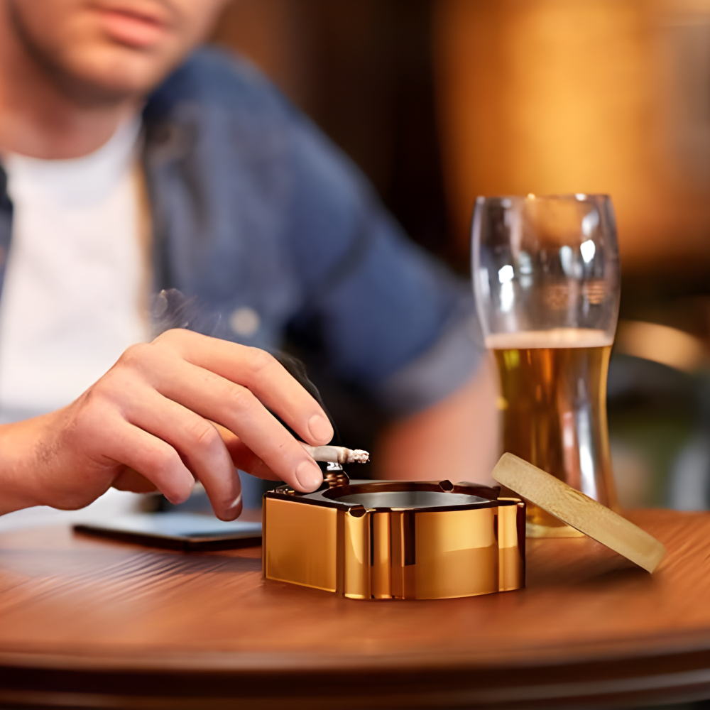 AshKeeper™ - Elegante Metall-Aschenbecher mit eingebautem Feuerzeug