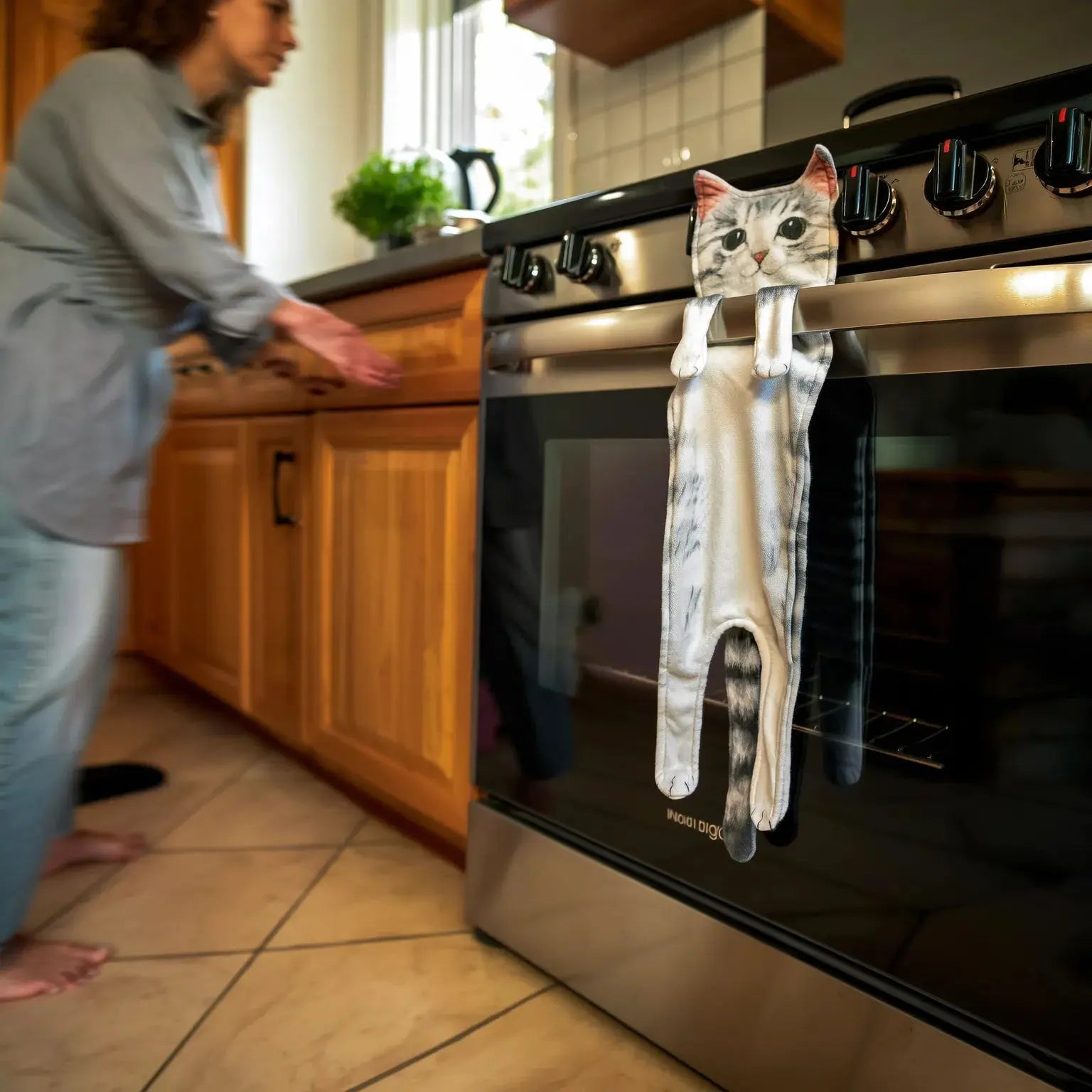 Dieses charmante Handtuch mit verspieltem Katzenmotiv bringt eine freundliche, warme Atmosphäre in Ihre Küche oder Ihr Bad. Hergestellt aus weichem Mikrofaser-Polyester, fühlt es sich sanft auf der Haut an und nimmt zuverlässig Feuchtigkeit auf. Ausgestattet mit praktischen Pfoten-Laschen, bleibt es sicher aufgehängt und stets griffbereit – perfekt für alle, die Komfort und Bequemlichkeit schätzen.