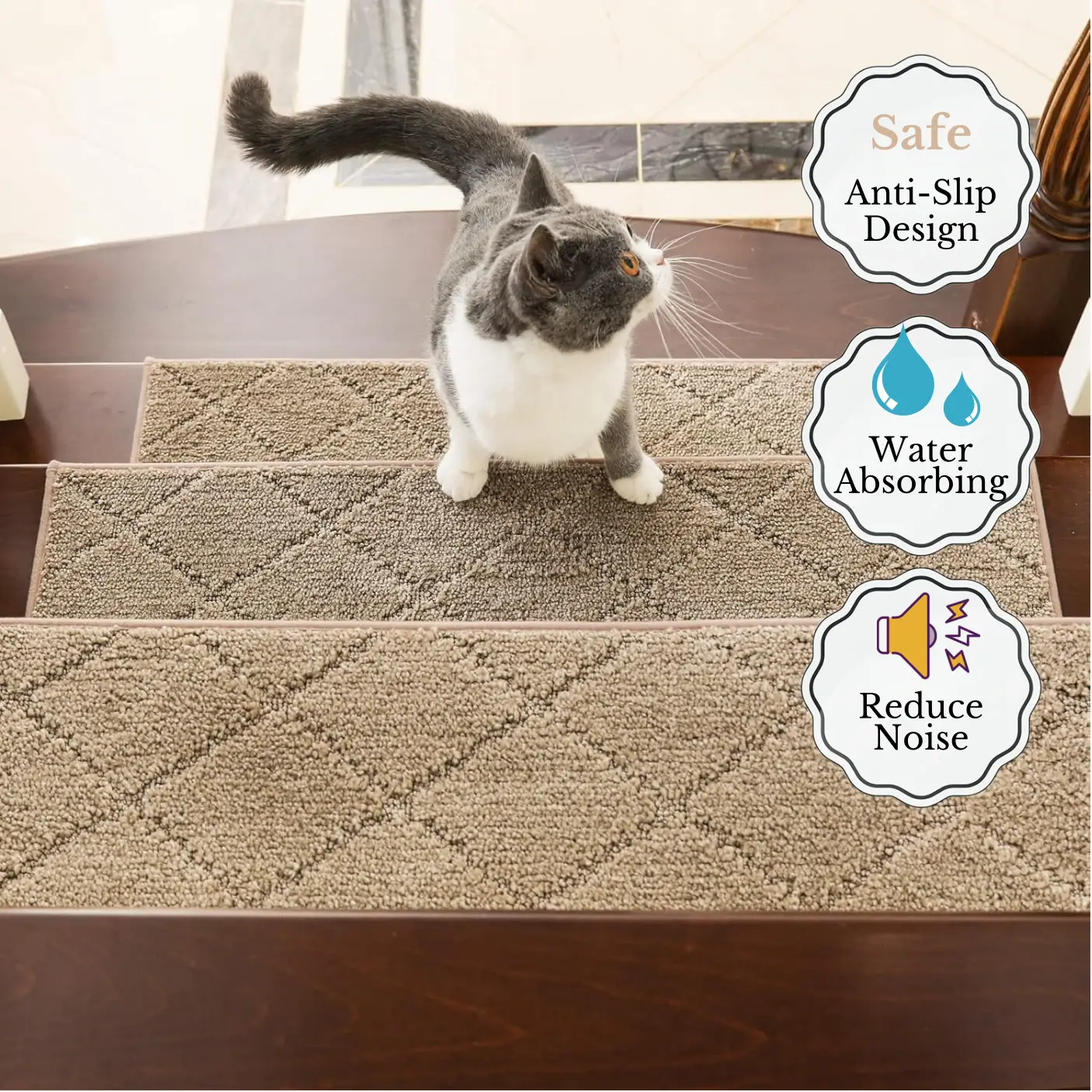 Veredeln Sie Ihre Treppe mit rutschfesten Stufen, die für den Alltag entwickelt wurden. Hergestellt aus strapazierfähigem TPU-Gummi bieten diese Stufenauflagen auf Holz-, Fliesen- und Laminatböden einen sicheren Halt. Ihr schlankes, flaches Design fügt sich nahtlos in jedes Zuhause oder Büro ein und schafft einen sicheren Weg, ohne den Stil zu beeinträchtigen. Perfekt für Familien, Senioren und Haustiere, sorgen sie bei jedem Schritt für mehr Sicherheit.
