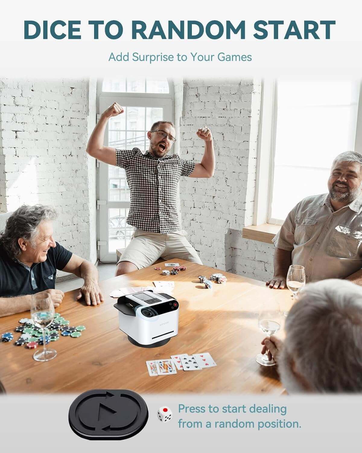 Schaffen Sie ruhige, faire und angenehme Momente bei jedem Treffen – kabelloser Komfort bringt ein neues Maß an Leichtigkeit in Ihre Kartenspiele.