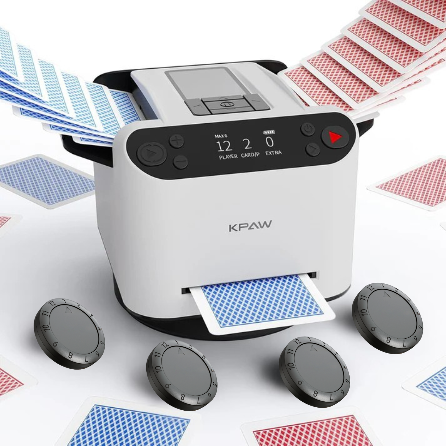 Genießen Sie perfekt gemischte Kartendecks ohne Geräusche oder Aufwand. Dieser automatische Kartenschüttler sorgt für ein reibungsloses und faires Spiel für bis zu 12 Spieler – mit flüsterleiser Bedienung und einfacher kabelloser Steuerung. Konzentrieren Sie sich auf den Spaß und die Freunde am Tisch.