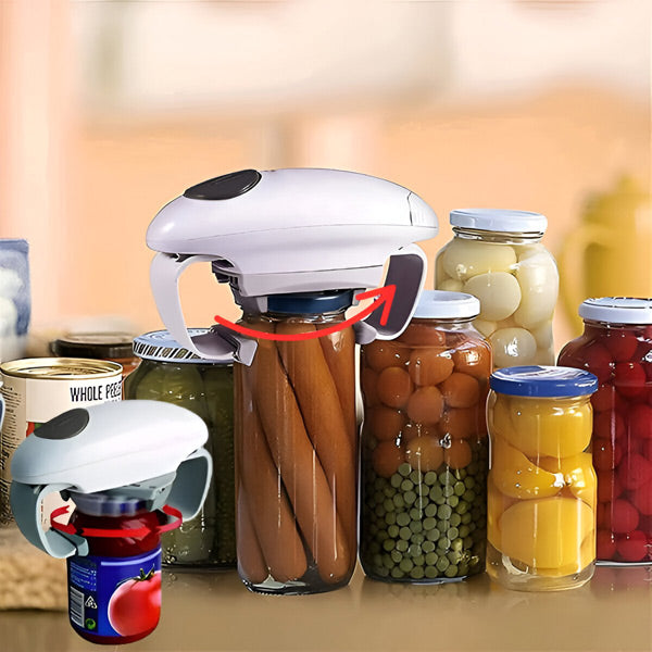 Entdecken Sie eine einfache Methode, Gläser ohne Beschwerden oder Anstrengung zu öffnen. Ob Marmelade, Gurken oder Konserven, dieser automatische Glasöffner passt sich allen gängigen Deckelgrößen an und macht Küchenarbeiten mit nur einem Knopfdruck angenehm und einfach. Perfekt für Senioren, Kinder oder jeden mit eingeschränkter Griffstärke – er sorgt für mehr Komfort und Unabhängigkeit, indem er Drehen, Ziehen und Abrutschen überflüssig macht.