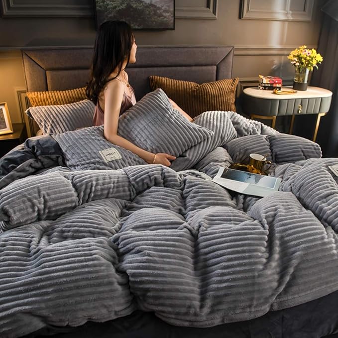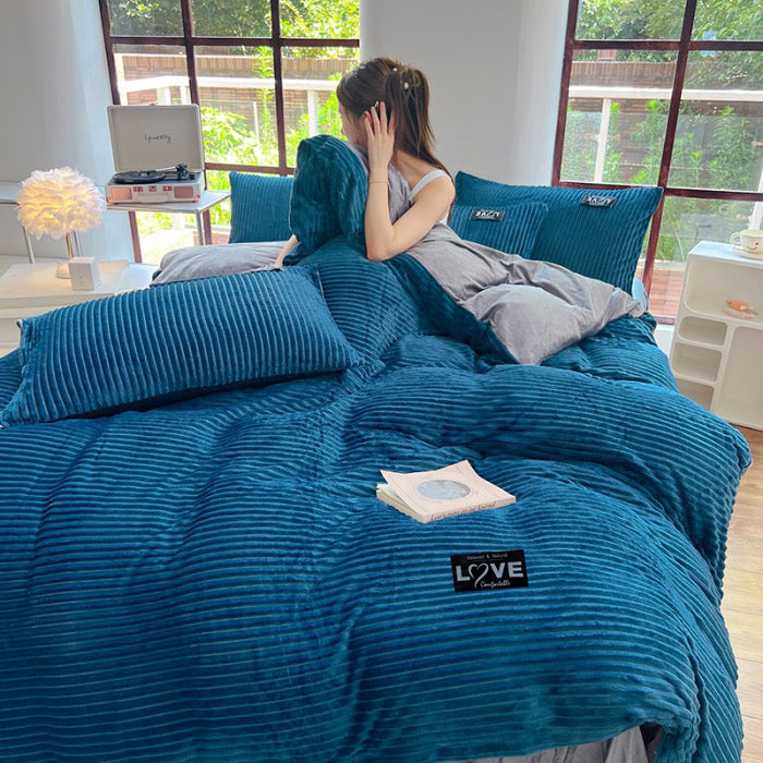 Restavia™ - Samt-Korallenfleece-Bettbezug mit Kissenbezügen