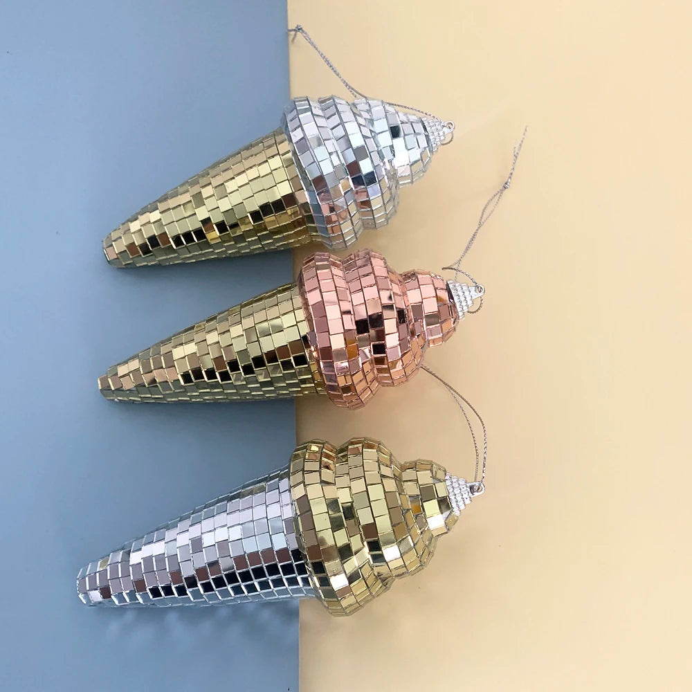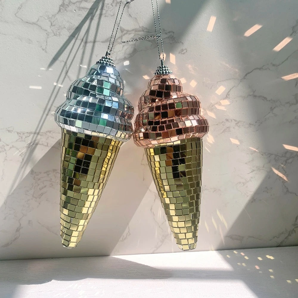 Bringen Sie Spaß und Glanz in jeden Raum mit dieser von der Disco inspirierten Eistüten-Wanddekoration. Die spiegelnde Discokugel-Oberfläche fängt das Licht ein und wirft schimmernde Reflexionen, die Ihren Raum erhellen. Mit den Maßen 15 x 6 cm verleiht dieses Glasstück farbenfrohen, retro- oder eklektischen Interieurs eine einzigartige Note.